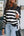 Stripe Striped Print Pocketed Long Sleeve Top with Slits - Stripe