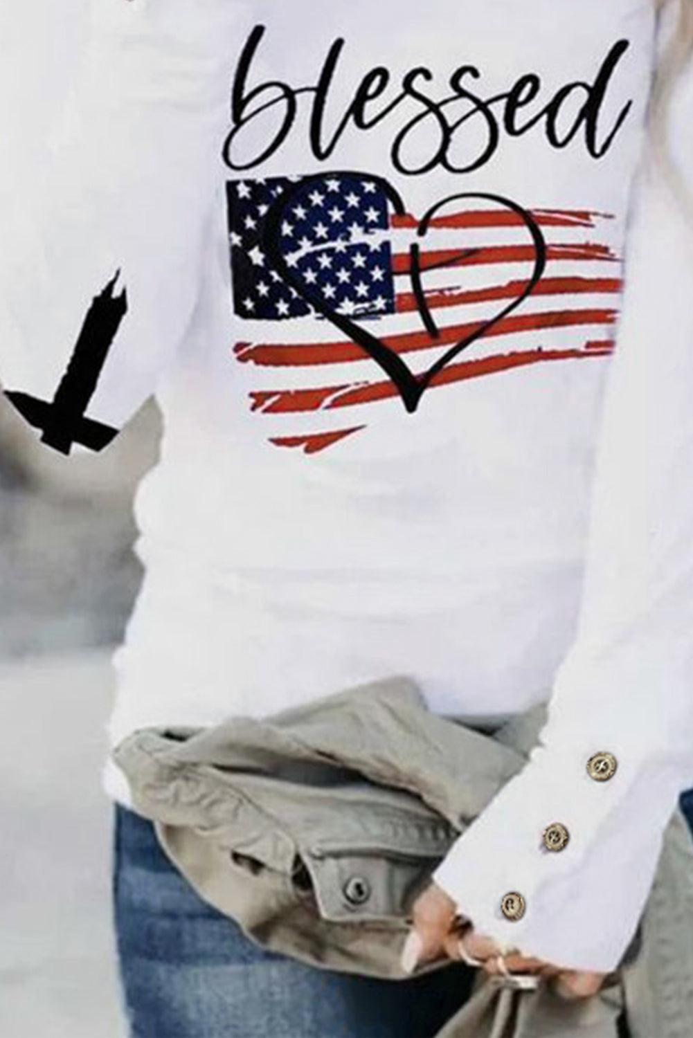 Blessed American Flag Buttoned Long Sleeve T Shirt