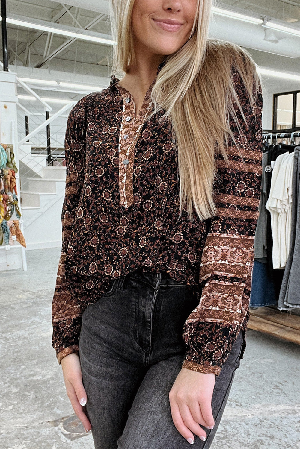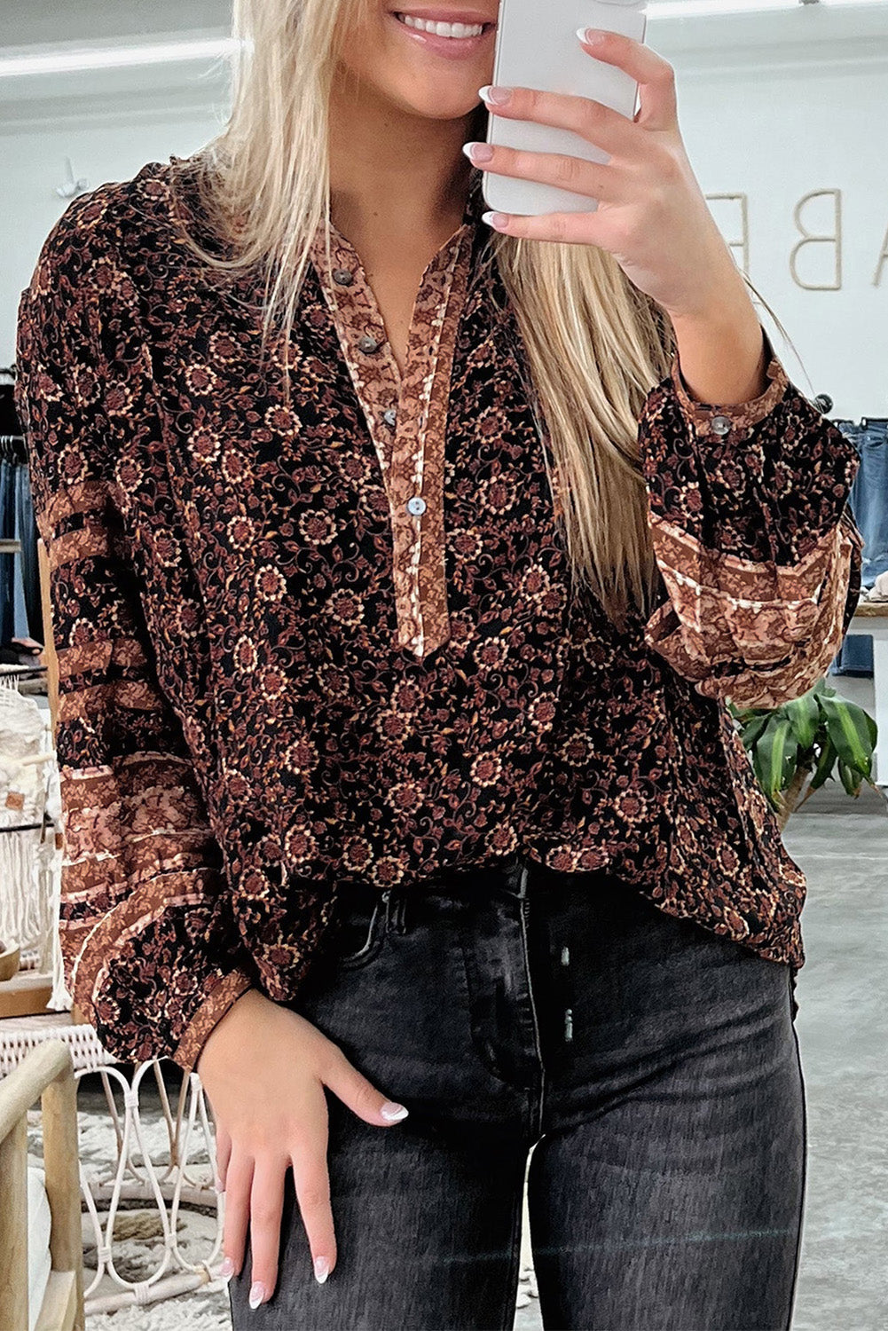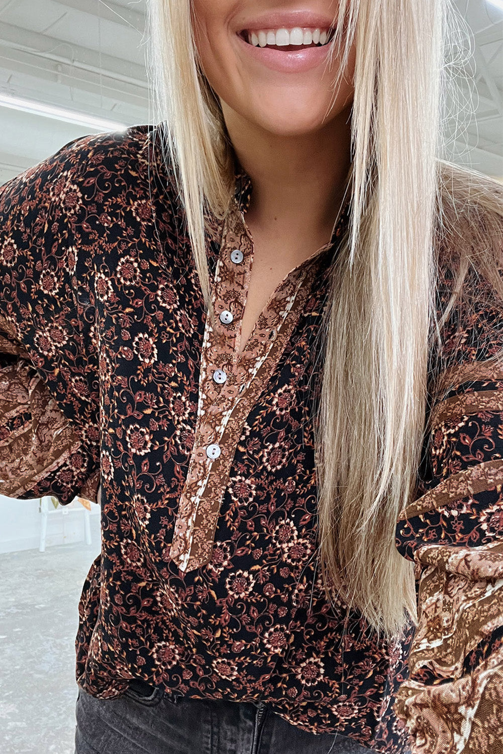 • This gorgeous blouse features functioning buttons at the neckline and wrist The floral pattern makes this blouse vintage, chic and elegant