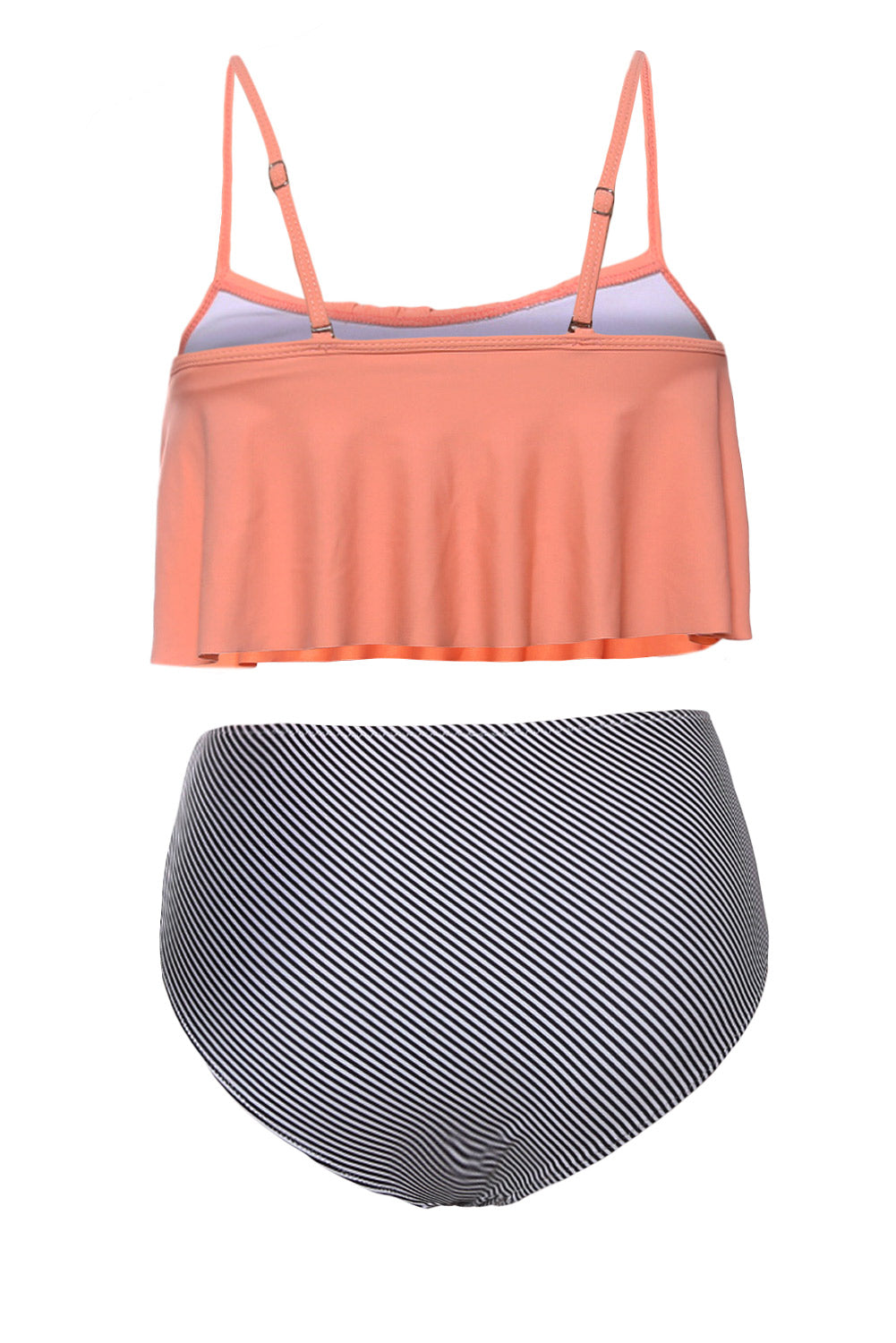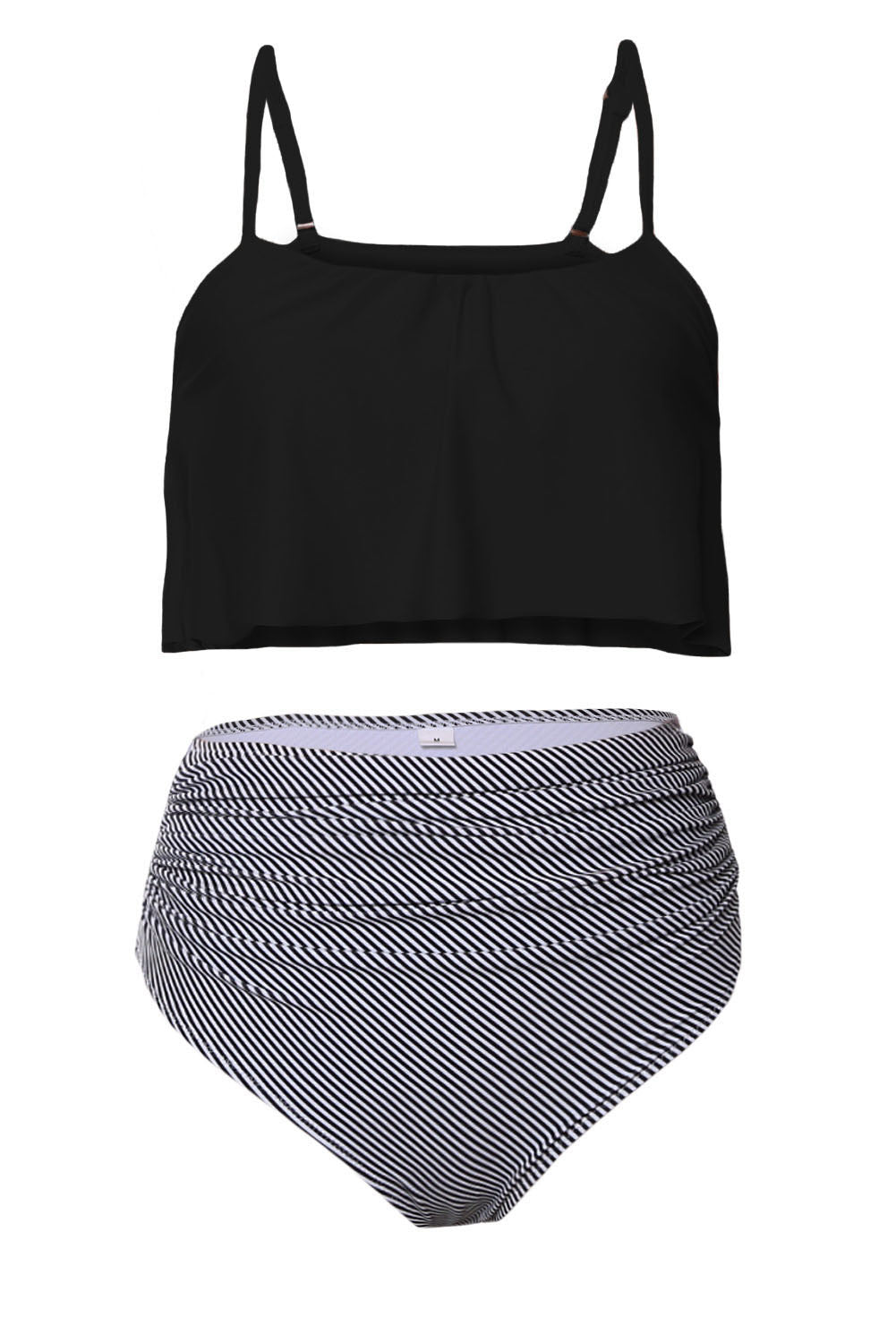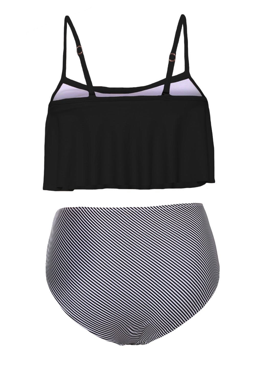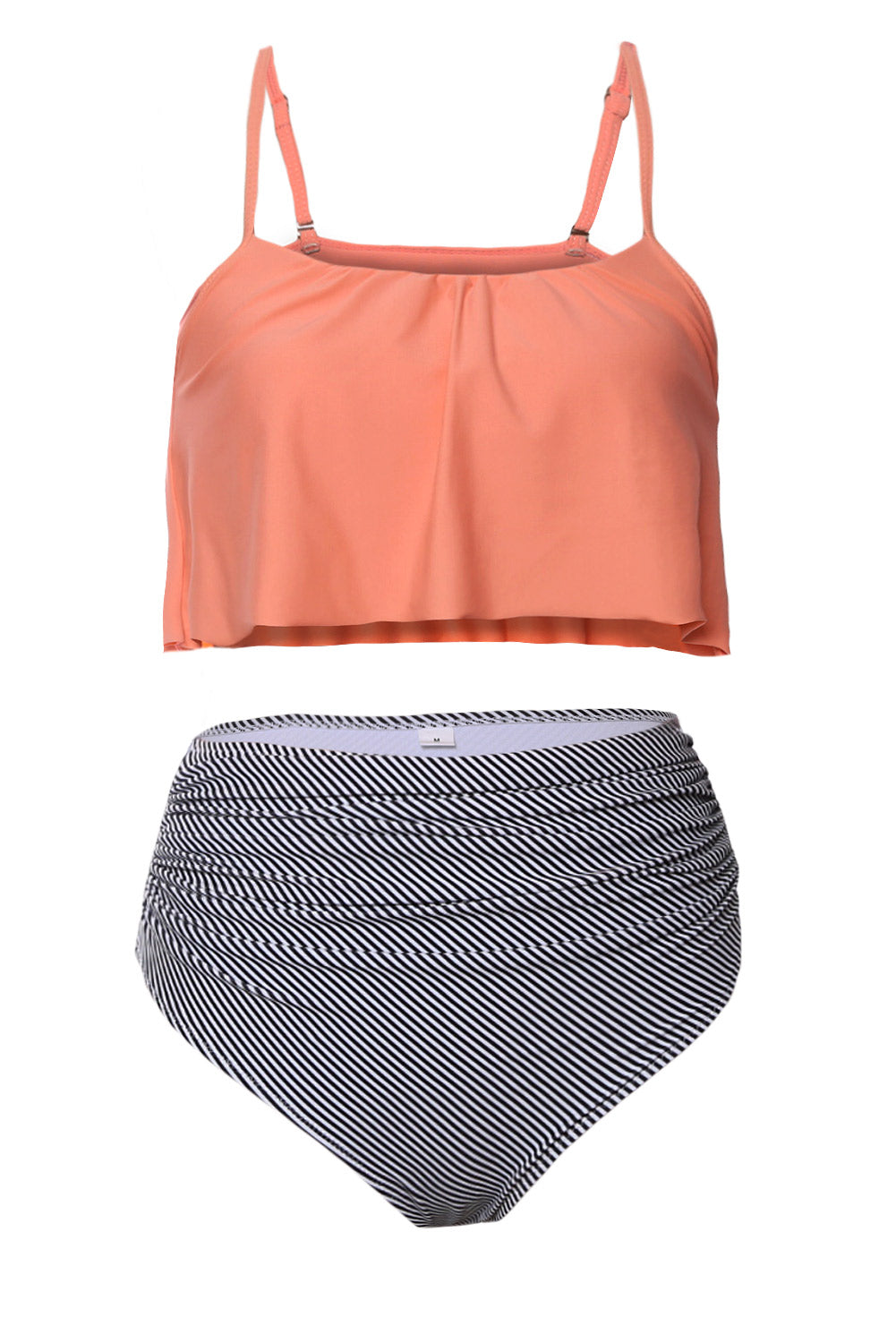 Looking for something a little more adorable and gorgeous than your average black basic bikini? We have got you covered with this Glowing Top and Striped Bottom High Waist Swimwear. The removable padding will offer the support and comfort you need while the adjustable straps gives a perfect fit. Full coverage panty with chic striped print in high waist and stretchy fit that’s easy to pull on.