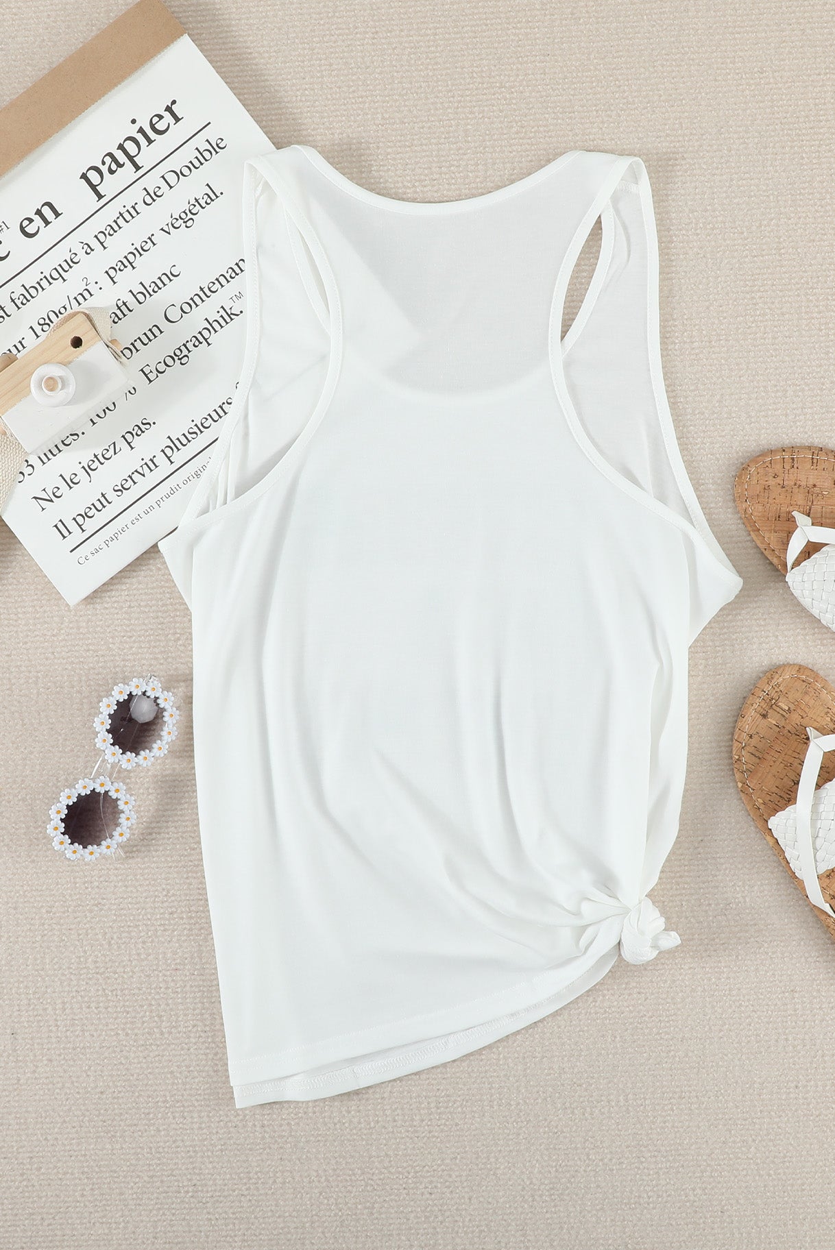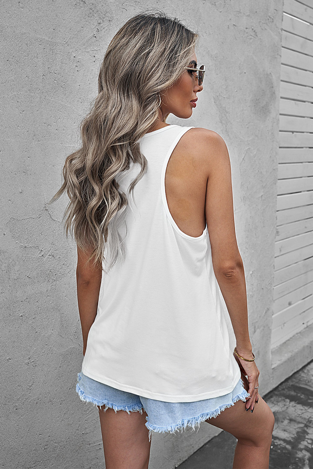 •The sleeveless top for women has a fashionable letter print, classic crew neck and a simple color scheme. It's a basic tank top for you