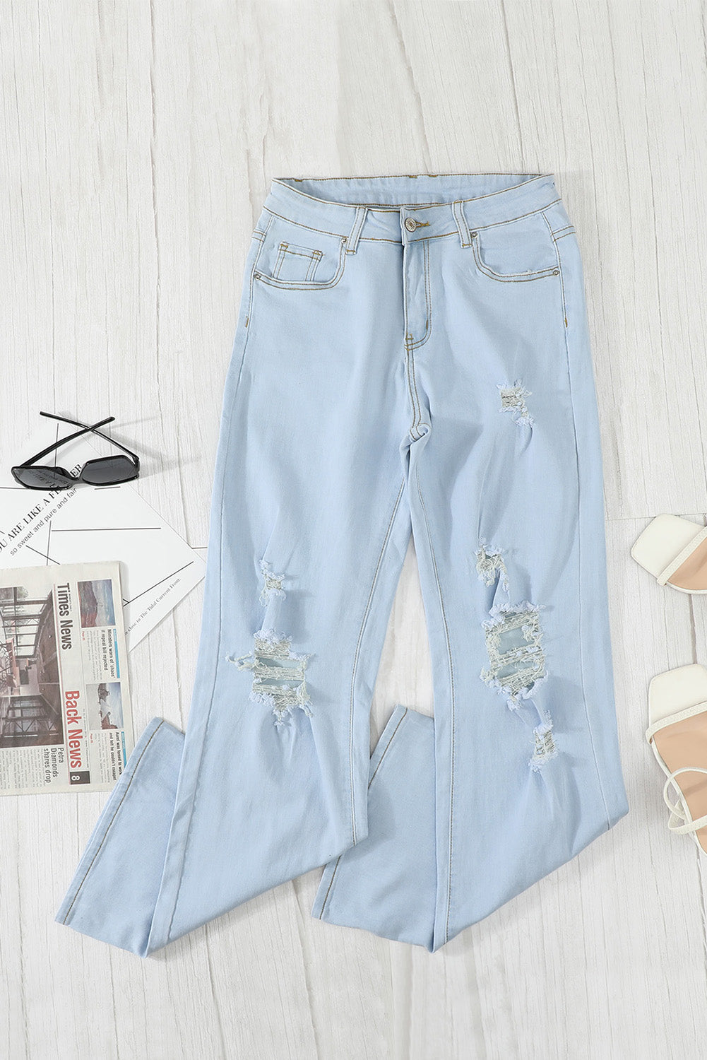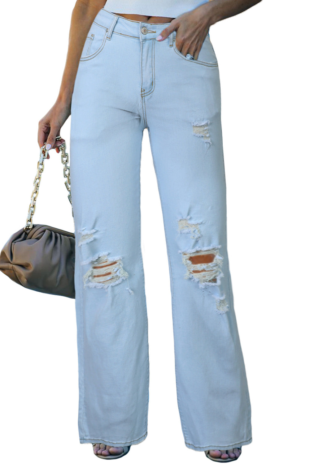 •The women’s wide-leg jeans with the ripped design are perfect to show your fashion sense and slim look