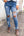 Christmas Pattern Splicing Mid Rise Distressed Jeans