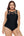 Solid Black Hollow-out Neck Plus Size Maillot Swimwear