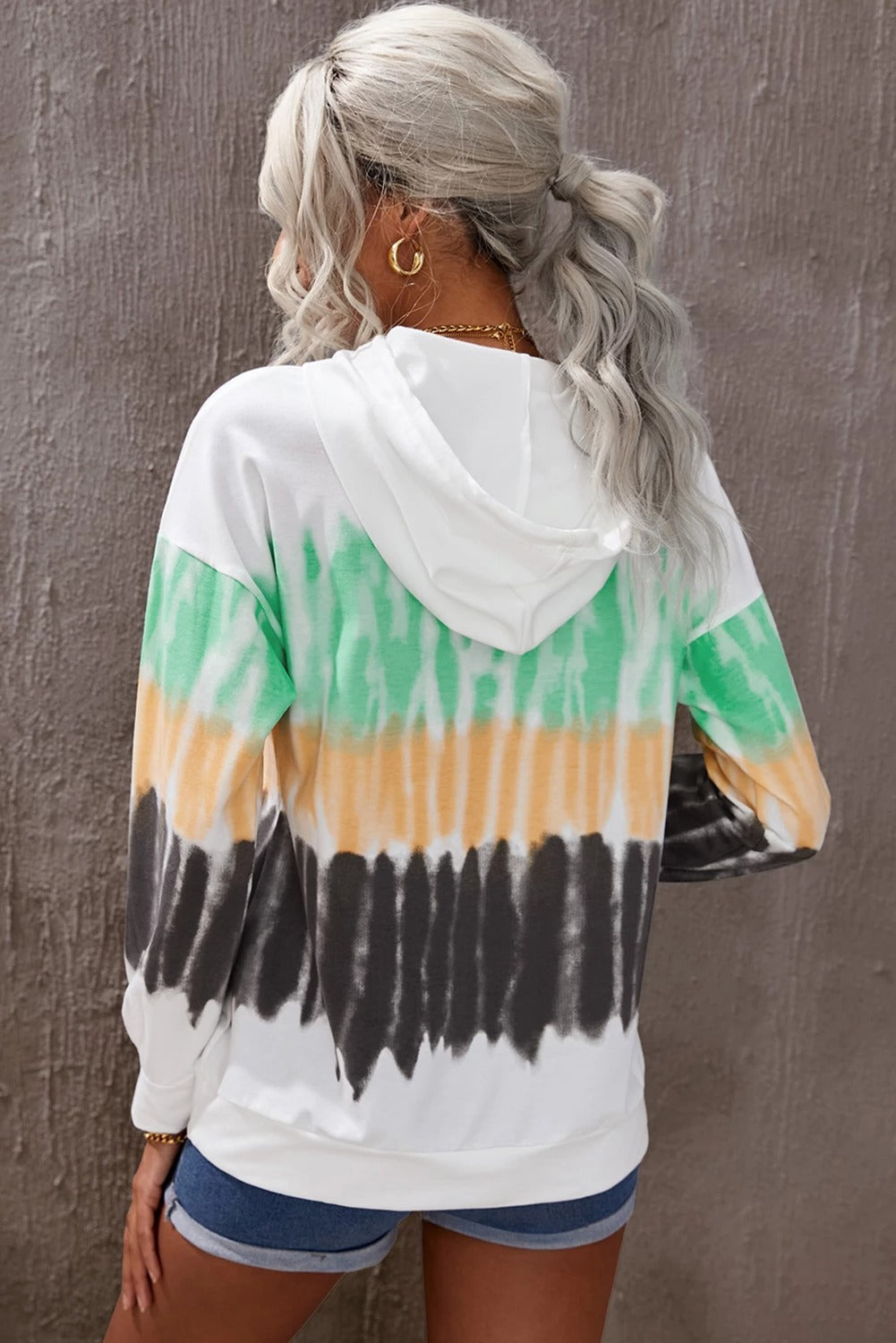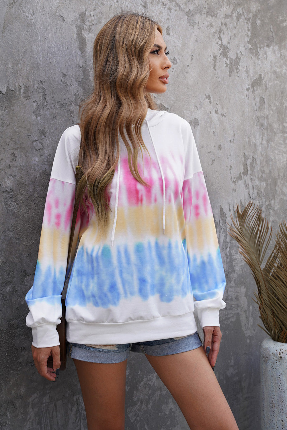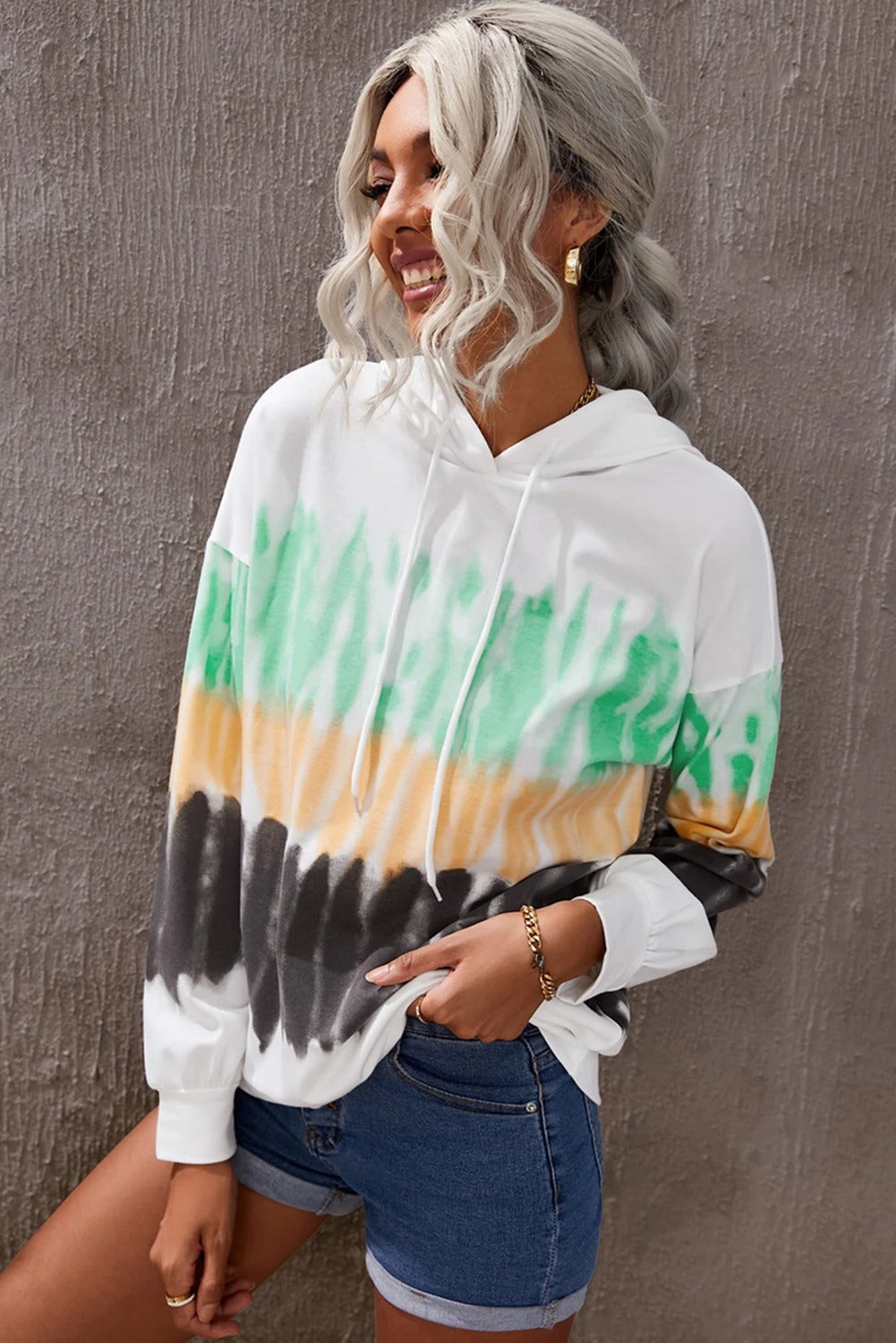 Colorblock Tie-dye Drawstring Pullover Hoodie