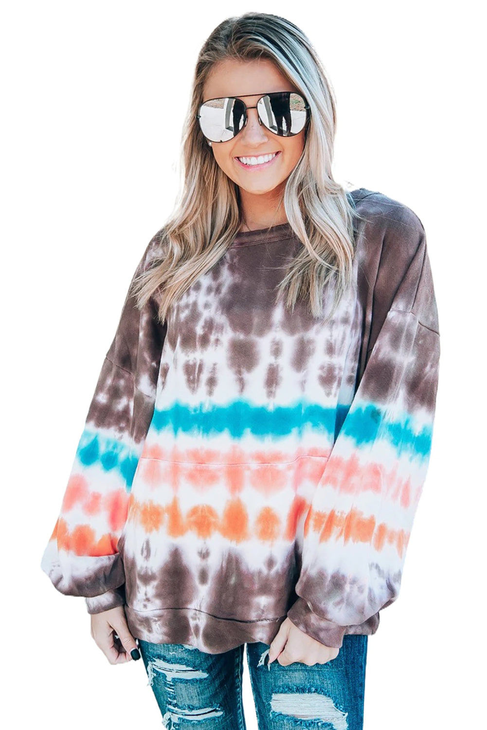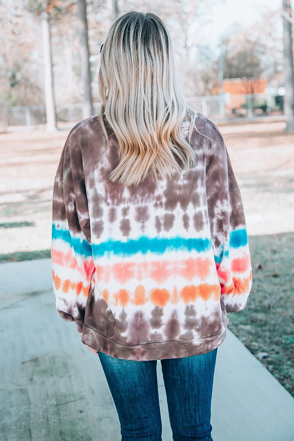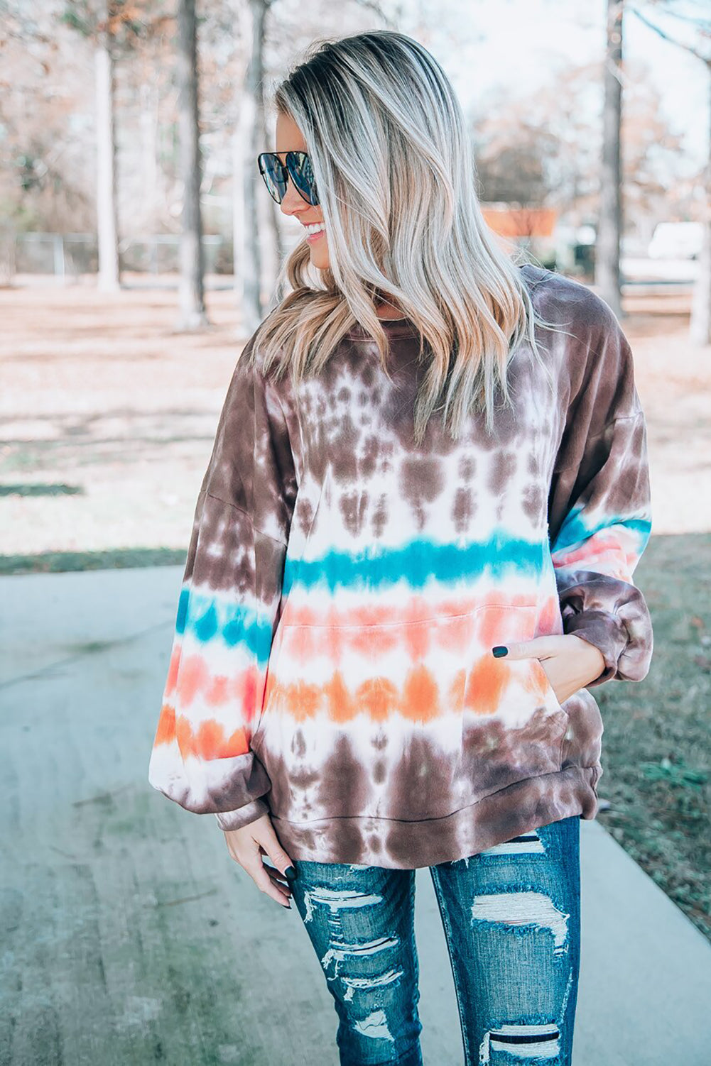 Tie-dyed Print Crew Neck Pullover Sweatshirt with Pocket