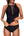 High Neck Plunge Mesh Ruched Tankini Swimwear - Black