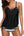 Blouson Striped Printed Strappy T-Back Push up Tankini Top - Black