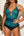 High Neck Plunge Mesh Ruched Tankini Swimwear