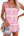 Pink Ruffled Short Sleeve Leopard Splicing Flowy Plus Size Top